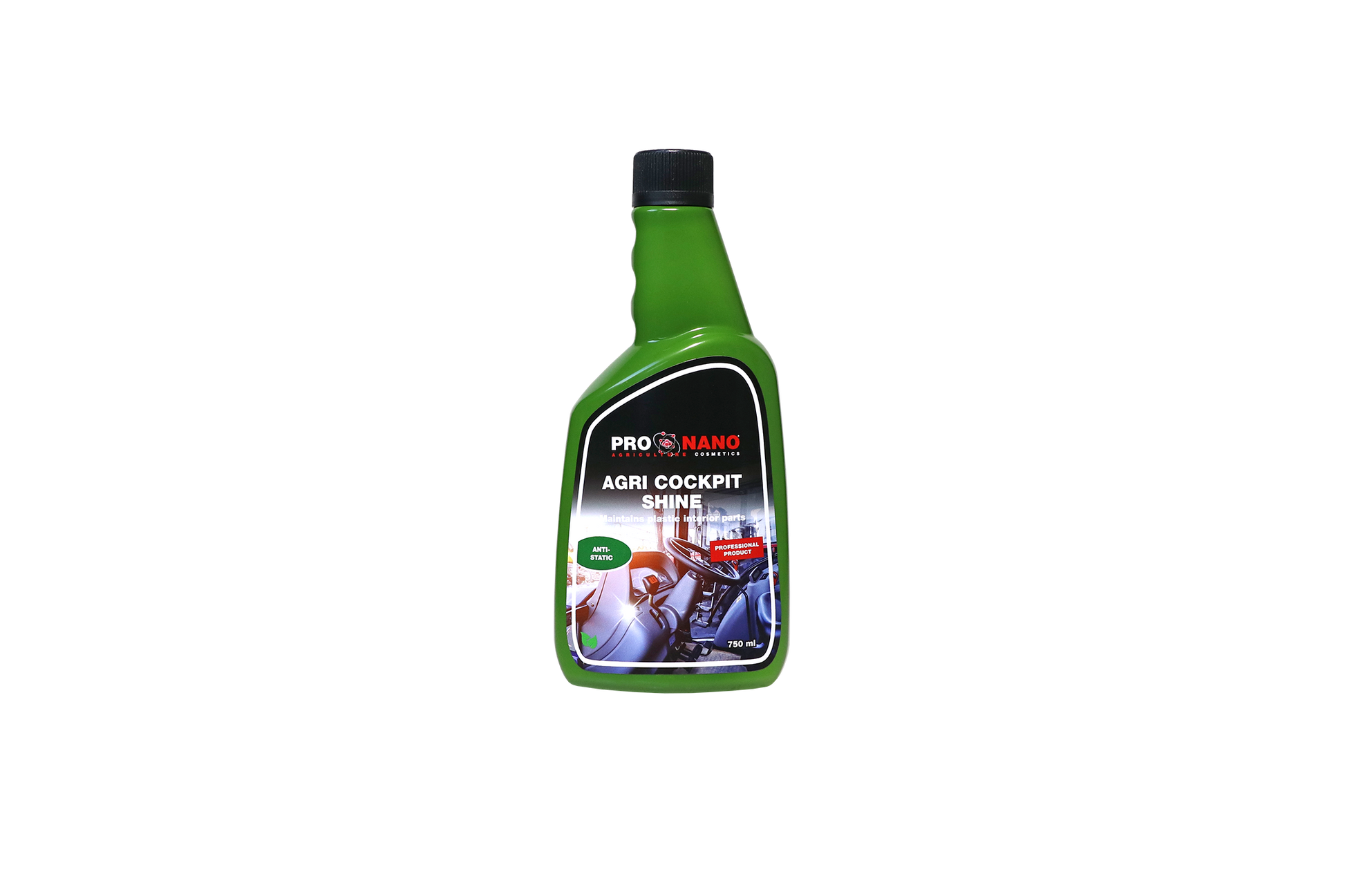 ProNano Agri Cockpit Shine is een innovatief product voor het onderhoud van kunststof, rubber en vinyl onderdelen in de cabine van uw landbouwvoertuigen zoals tractoren. Het product is geschikt voor dashboards, deurposten en deurpanelen. Door de zorgvuldig samengestelde ingrediënten heeft het product antistatische eigenschappen. Hierdoor zijn de behandelde oppervlakken en onderdelen stofafstotend.