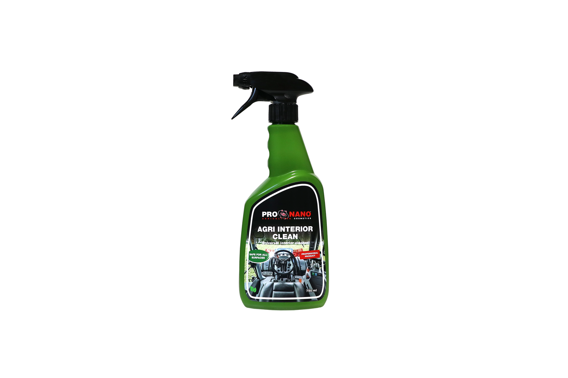 ProNano Agri Interior Clean is een universele reiniger voor het interieur van tractoren en andere interieurs van landbouwvoertuigen en machines. Het product is geschikt voor het reinigen van kunststof onderdelen, gelakte oppervlakken, cockpits, stoffering, deuren en meer. Het bevat een hoge concentratie aan werkzame stoffen en verwijdert vlekken, stof en onaangename geuren. De producten hebben een aangename geur.