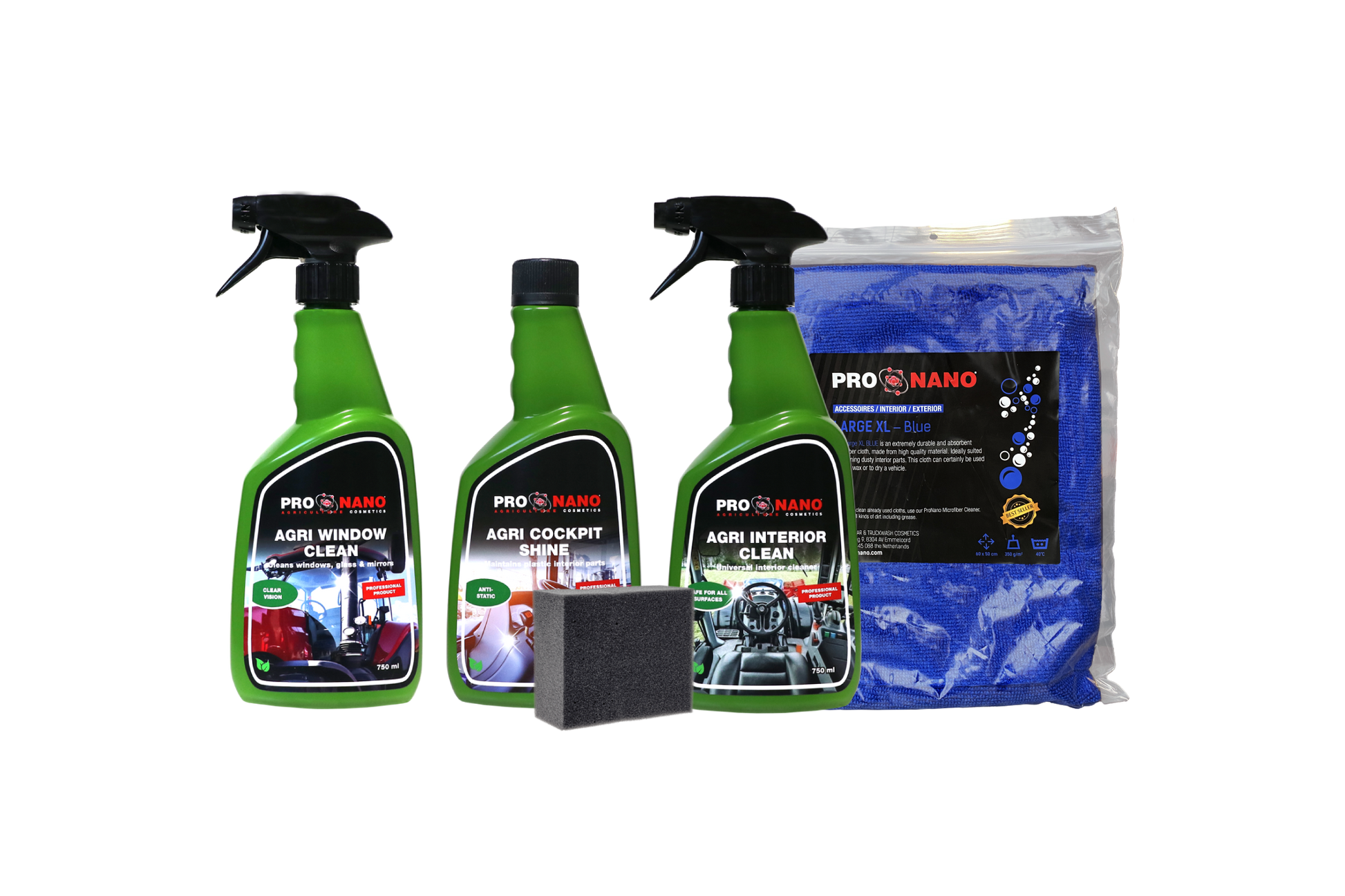 Een verzorgd interieur werkt het prettigst! Houdt het interieur van uw tractor en andere landbouwvoertuigen in top conditie met het ProNano Agri Interior Pakket! Dit pakket bevat de essentiële producten om uw interieur weer schoon en fris te maken en behouden! Met dit pakket reinigt, herstelt en behoudt u het interieur van uw voertuig.